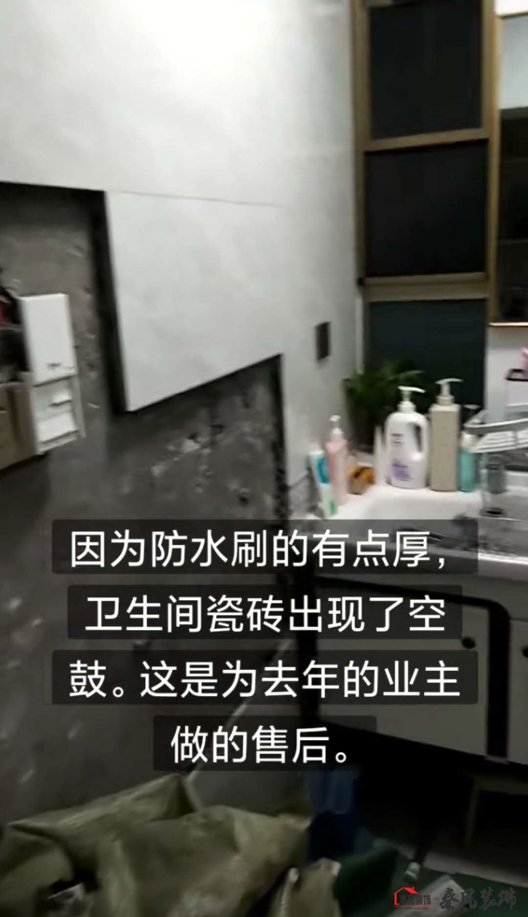 衛(wèi)生間貼磚為什么在一兩年內有時候出現(xiàn)空鼓?公司每年也會遇到一兩次。主要原因是防水刷的太厚,防水層刷的太厚了會造成水泥與原毛坯墻產生隔離,沒有附著力,造成脫離空鼓。外行看起來很復雜,其實內行處理比較簡單,裝有空鼓的磚細心取下來,再重新輔貼就行。所以裝修找一個靠譜的,有售后保障的很重要。(視頻是為去年業(yè)主做售后。因格式的原因,視頻在電腦網頁上可顯示。)